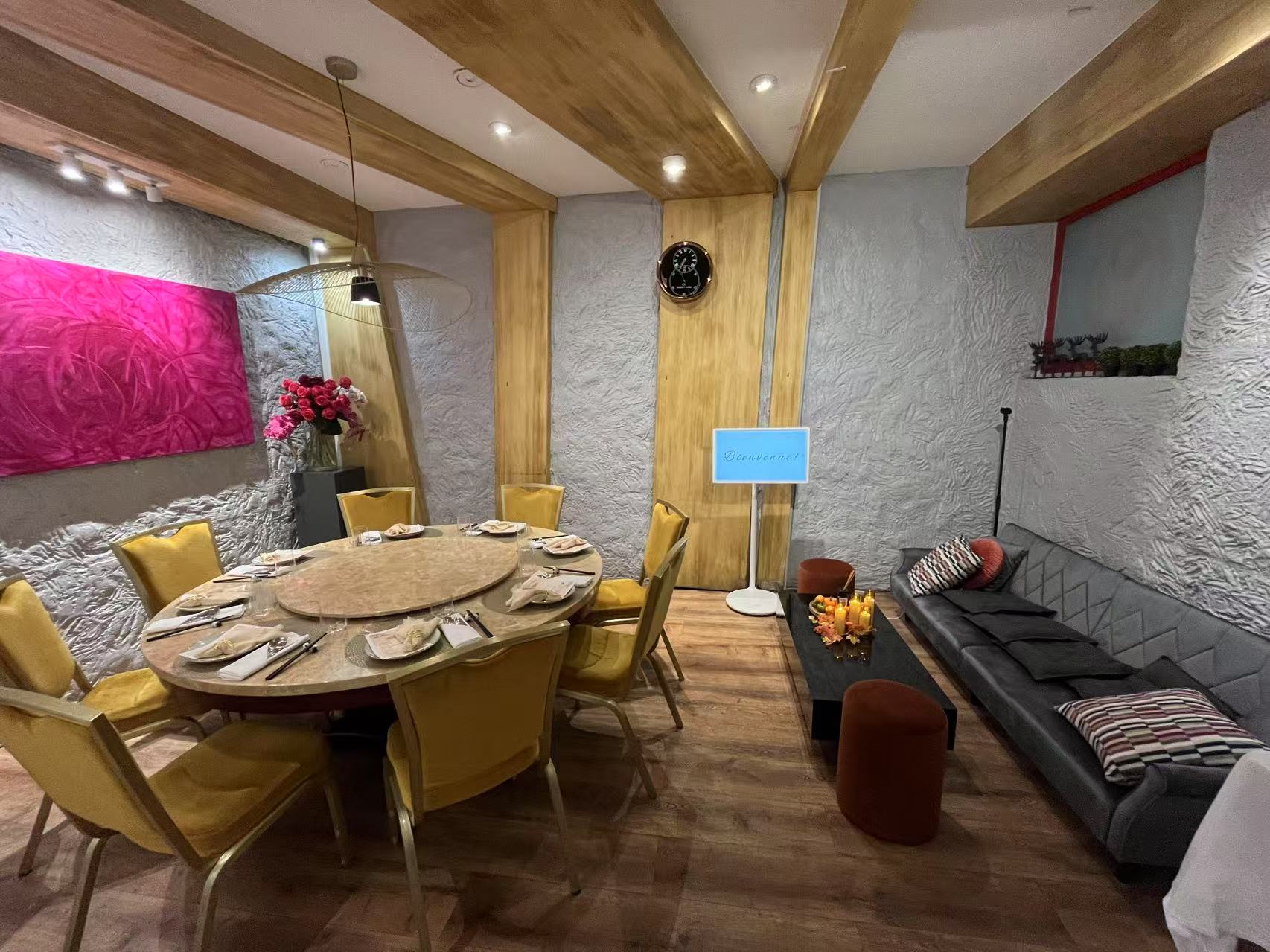 佩金宫位于日内瓦市中心,紧邻中央火车站,距离日内瓦湖仅五分钟的步行路程。通过一个小酒馆式的入口,在一个现代优雅的用餐空间里,金陵饭店的前厨师和来自重庆的厨师带来了最正宗和令人惊叹的淮扬菜和川菜的烹饪艺术。 餐厅一周七天提供全套午餐和晚餐菜单,每天的菜肴都是在厨房新鲜烹制的,包括各种开胃菜、蔬菜、肉类、海鲜、面条和米饭、甜点和饮料。 人均消费在35 fr左右,可以满足最普通大众的需求。它还为仪式、贵宾室、会议和会议室提供定制租赁服务。